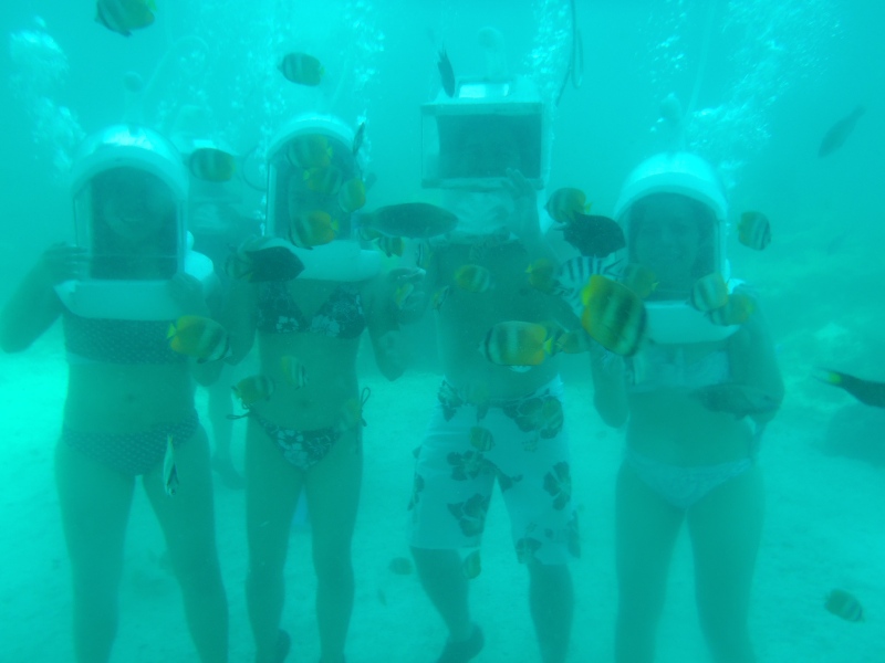 After loading up our stomachs, we had enough energy and headed off for our first activity: helmet diving [sometimes called reef walking]. Brenda, the lovers [who were celebrating their first anniversary, by the way], and I went to try this underwater adventure.